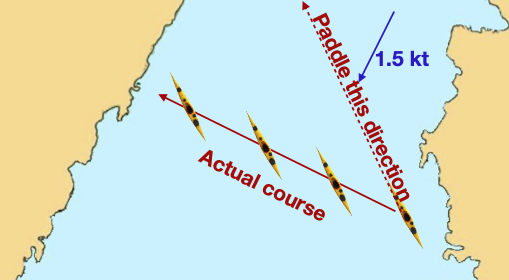 Paddling across open water, if we can see where we are going, seems simple. However, as we saw previously, under the effects of tide and/or wind we may not end up where we expect.
