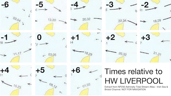 Trearddur Bay, Anglesey has somewhat complex tidal flows. It is helpful to use a transit to cross it.