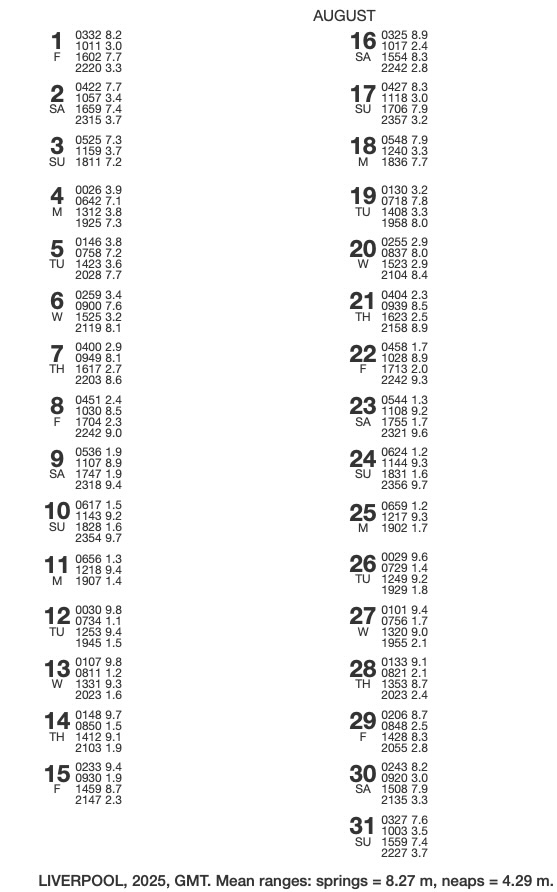 You are planning a multi-day trip in the Moray Firth on the east coast of Scotland. This is an area with relatively little tidal flow, and the trip is planned for neaps.