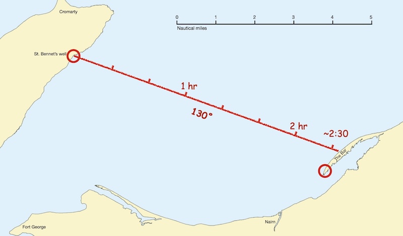 Plan a crossing from St. Bennet’s Well to a planned camp spot at the south-west end of The Bar