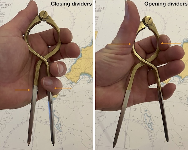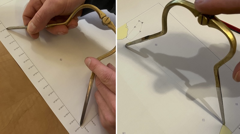 We can now mark off the line of the crossing with tick marks every mile, using the chart’s scale and a pair of dividers: