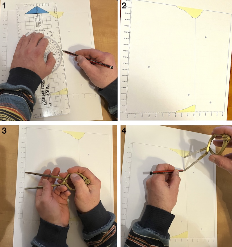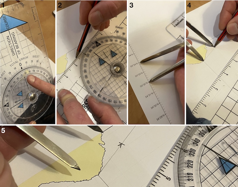 The chart work outlined in this section is a step more difficult than described elsewhere in these notes. I’ve tried to break it down step by step and explain it as simply as possibly. It might help to print off a copy of the example chart that I’ll provide and follow along with the example step by step.