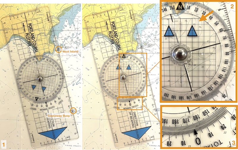 - Take a bearing towards the island and periodically check to see if this bearing remains constant. This tends to give less immediate feedback than the transit method