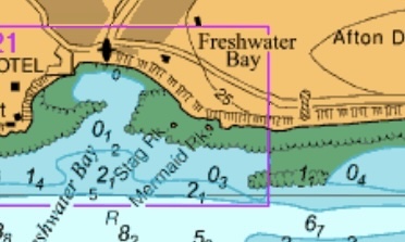 OS maps also show areas between high and low tide, but will not show shallow areas below the low water mark.