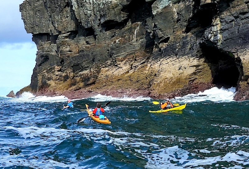 Rockhopping through gaps, caves, gullies etc is great fun, but many moves will become more dangerous and challenging in larger waves. Observe for some time before committing to a particular move, and keep an eye out to sea in case larger waves start coming in.