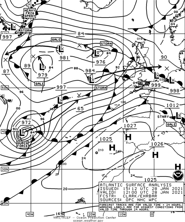 How long it takes for the waves to drop after the wind stops blowing will depend on how strong the wind was and on the fetch. A very simple rule of thumb is that the waves might become small after a time in hours equal to the fetch (nautical miles) divided by 4. So, in our example above with a 50 nautical mile fetch, it might take 12 hours for the waves to drop. Clearly if the fetch is long, we might expect there to be significant waves for a day or two after a strong wind has stopped blowing.
