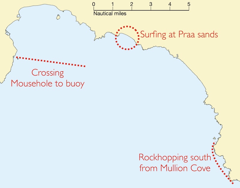An open water crossing from Mousehole out to a buoy and back