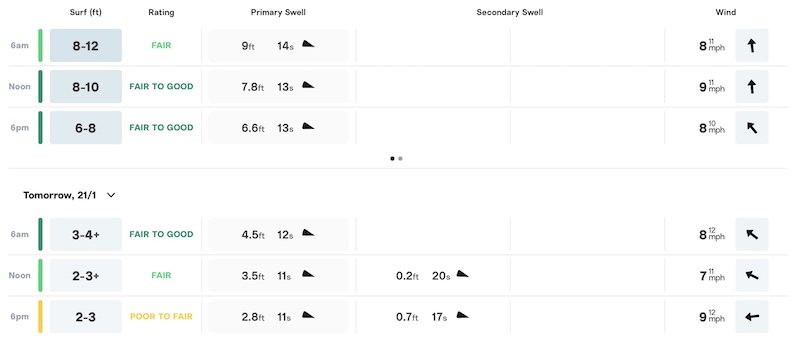 Surf height - the height of surf can be given as the ‘face height’ - the height of the front face of the wave from top to bottom - or the traditional/Hawaiian method which is about half this. Obviously, it’s good to check which scale is being used! Surfline defaults to face height for users in most, but not all, of the world.