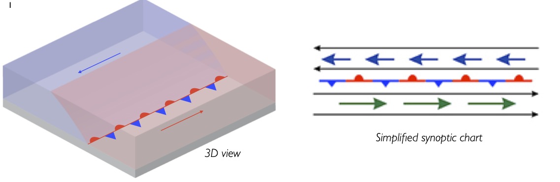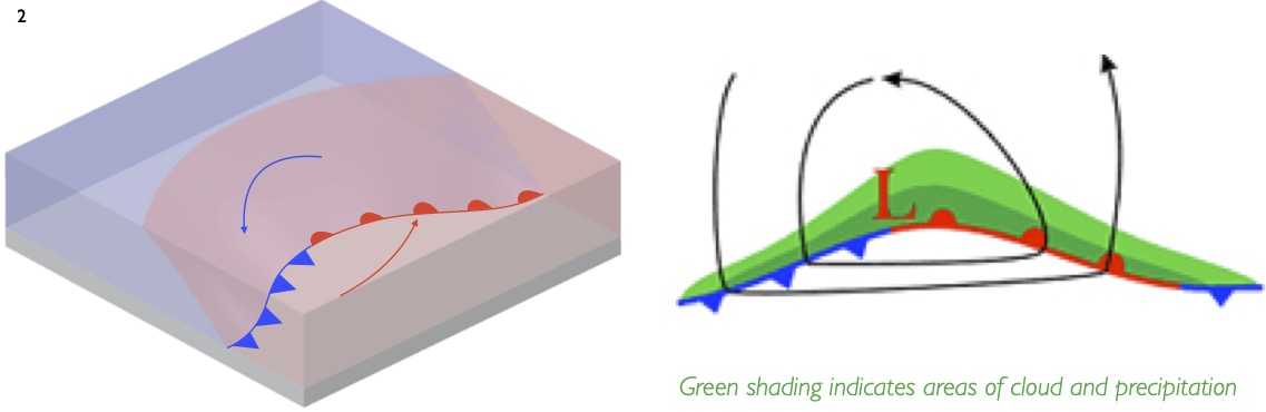 People with local experience and some knowledge of meteorology can tell a lot from looking at the clouds in the sky. For those of us with less experience, there are still some clues to be gained from the clouds - it’s fairly obvious that blue cloudless skies imply fine weather and dark brooding clouds are a portent of imminent rain. Perhaps most useful is the ability to compare the clouds in the sky to the weather forecast - if the clouds arrive earlier than forecast, this implies that the other forecast changes (e.g. wind, rain), may also occur early. Beyond this, some knowledge of meteorology, like the structure of depressions and the ability to understand synoptic charts, is helpful in understanding clouds.