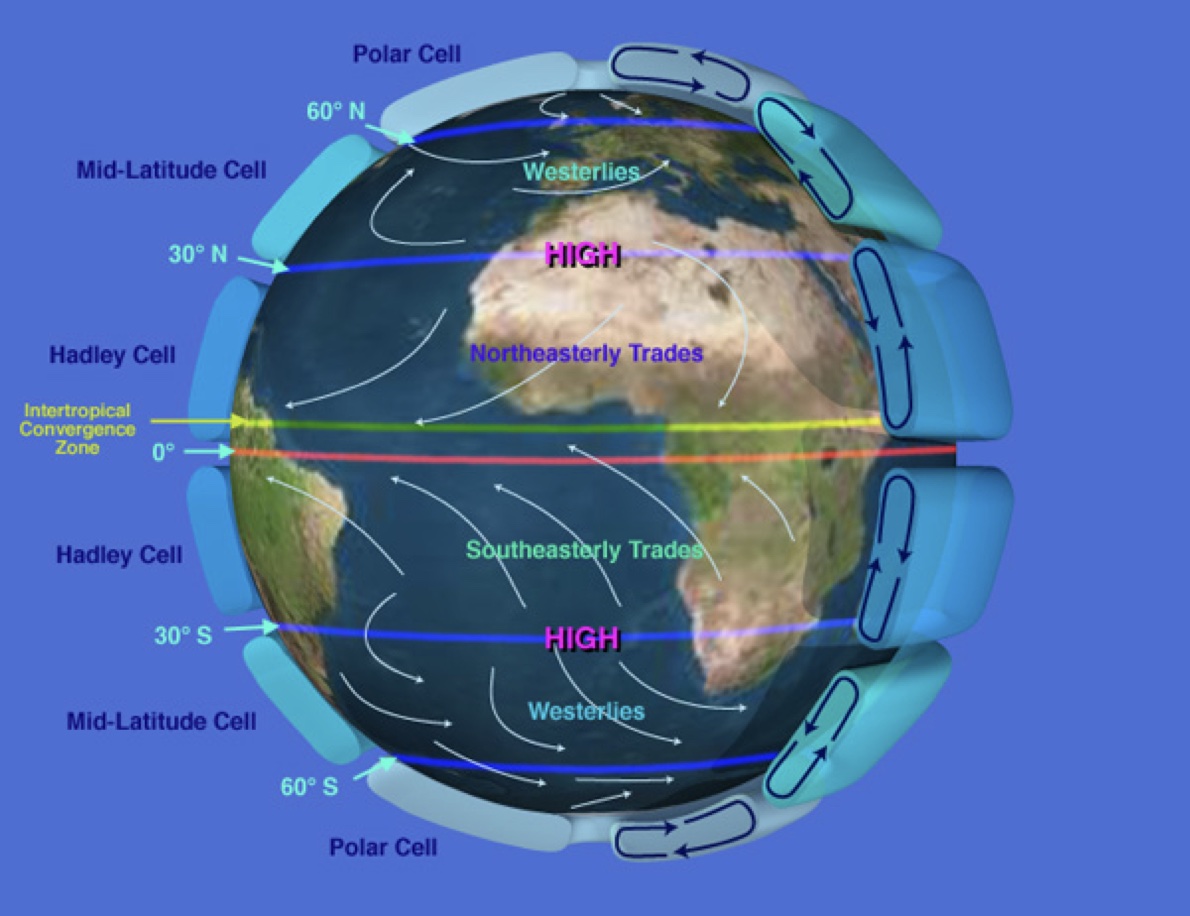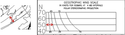 The wind is slowed down close to the earth’s surface by friction. The sea is relatively smooth, and winds at sea are often 80-90% of the high-level wind. The land typically has more features and is rougher - it often slows the wind to 50% of the high-level windspeed. As a result, we should be wary of estimating winds out at sea from those which we experience on the journey to our launch point.