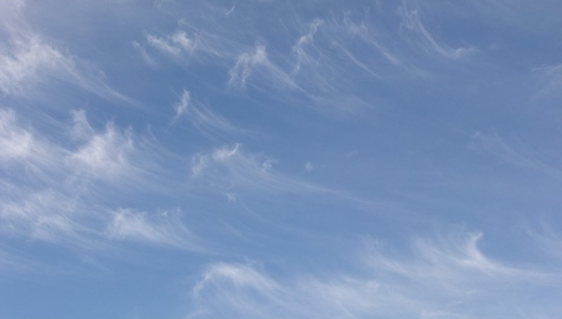 The lines of cirrus clouds indicate the direction of the high level wind, and thus the direction in which the approaching weather is coming from. The high level wind will normally be coming from a westerly direction. If you can see these clouds move fairly easily, that’s a sign of a strong jetstream and likely high winds to come.