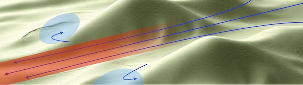 Most people will be aware that land features can affect the local wind around them - on a windy day, you can often find shelter behind a crag facing away from the wind. In fact, the land has a marked effect on the wind, often affecting wind patterns 10 miles or more out to sea. The effects of land features on the wind are going to be important for sea kayakers who mostly spend their time near the coast.