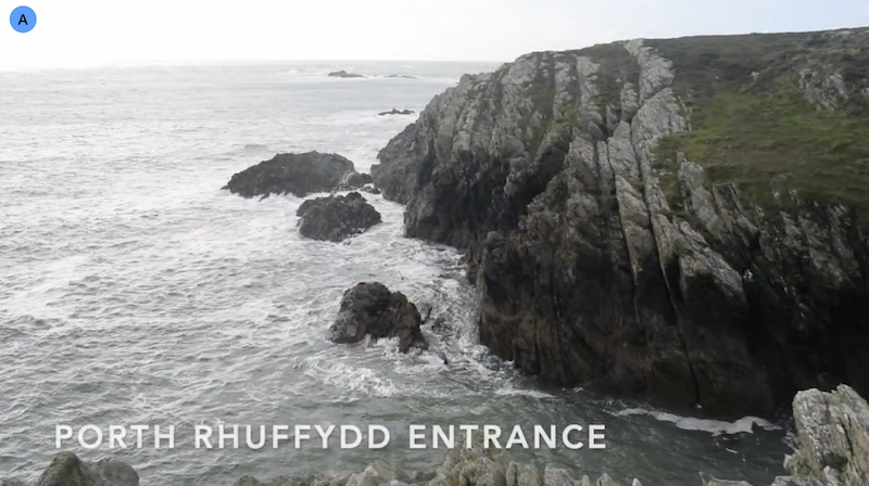 At point A, there is shelter from the land immediately to the west. We expect little wind under the cliffs and a benign sea state. Here’s a photo taken at point A in these conditions: