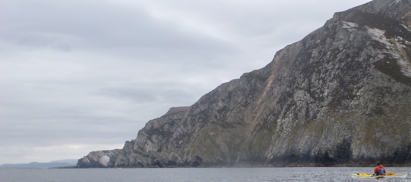 If the wind is strong (say force 4 or more), it often makes sense to seek coastlines that are sheltered from the wind. Be aware that the wind on these coastlines will blow offshore, creating a potential hazard. What seems like a light wind close to land and cliffs may be a strong wind further out. If the group gets blown away from land, getting back to shore may be difficult.